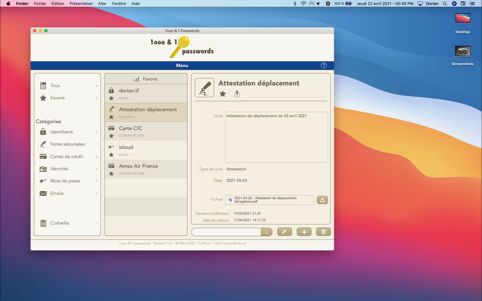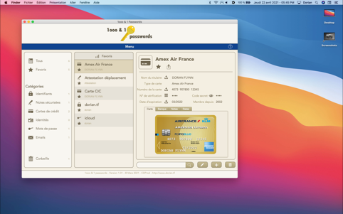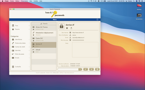 * MacOS : 1ooo & 1 passwords gratuit et utilisable avec une licence payante du logiciel FileMaker Pro.