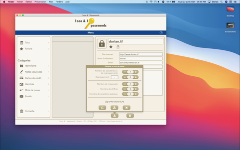 * MacOS : 1ooo & 1 passwords gratuit et utilisable avec une licence payante du logiciel FileMaker Pro.